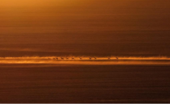 不远处,公藏羚羊与母藏羚羊竞相奔跑,阳光从山间穿过,将公藏羚羊黑白相间的皮毛染成金色。“太好了,粗略估计这个片区就有八千只。”尚鹏欣喜地举起长焦镜头,记录下公藏羚羊求偶时激烈追逐母藏羚羊的画面。