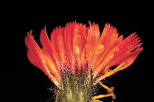 橙黄细毛菊为菊科细毛菊属多年生草本,橙黄色花冠醒目,花果期集中于夏季。其生境特异性极强,在哈萨克斯坦、乌兹别克斯坦、伊朗、阿富汗等国已有分布,国内目前仅见于夏尔希里保护区海拔1210—3670米的石砾草地及岩石缝隙,依赖保护区内39.5%植被覆盖率的独特生态,种群数量稀少。该保护区生态环境原始,是珍稀生物集中分布区,已记录高等植物1676种,被誉为“天然基因库”。(买尔亚木古丽·阿布来提)