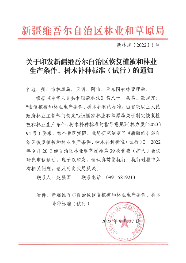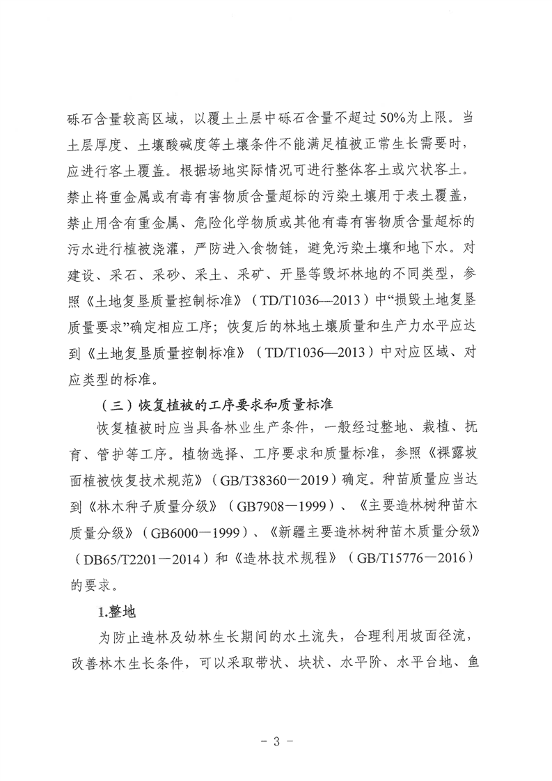 关于印发《新疆恢复植被和林业生产条件、树木补种标准(试行)》的通知