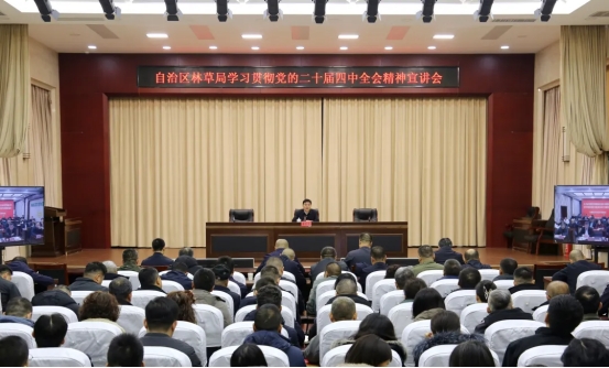 12月8日,自治区林草局开展学习贯彻党的二十届四中全会精神宣讲报告会。局党委书记张志刚作专题宣讲报告。局机关及局属事业单位党员干部职工600余人参加会议。