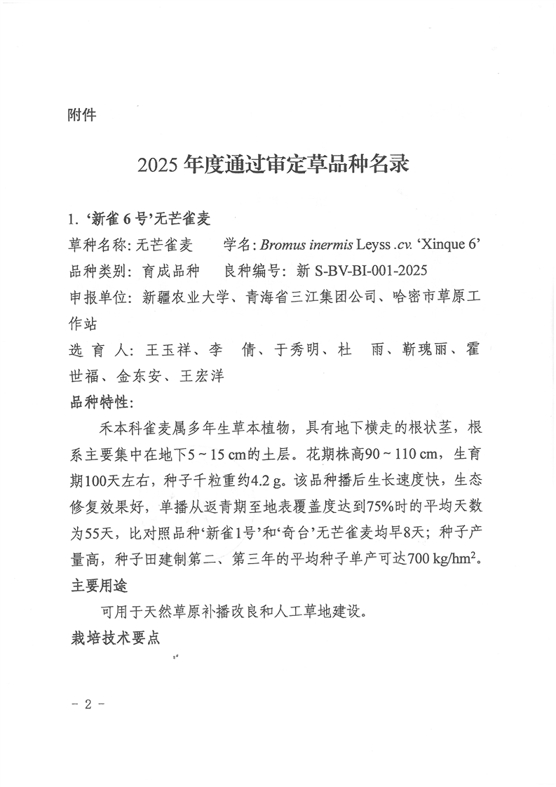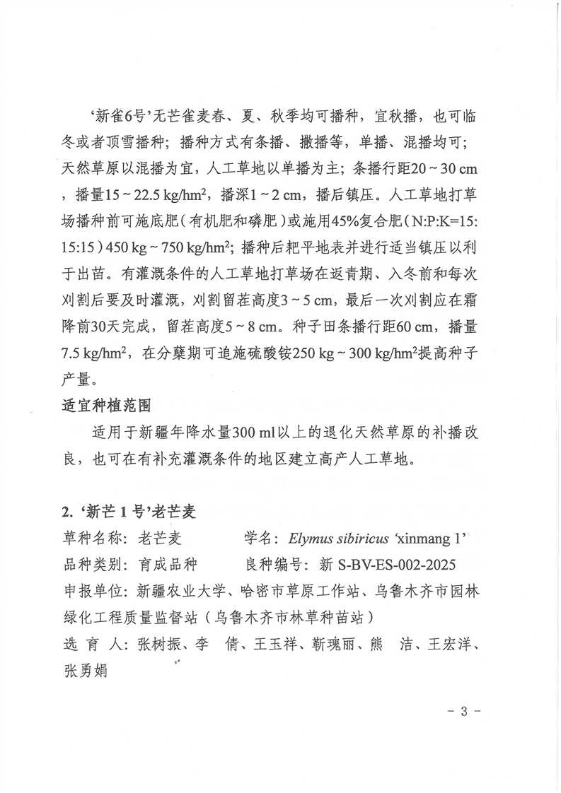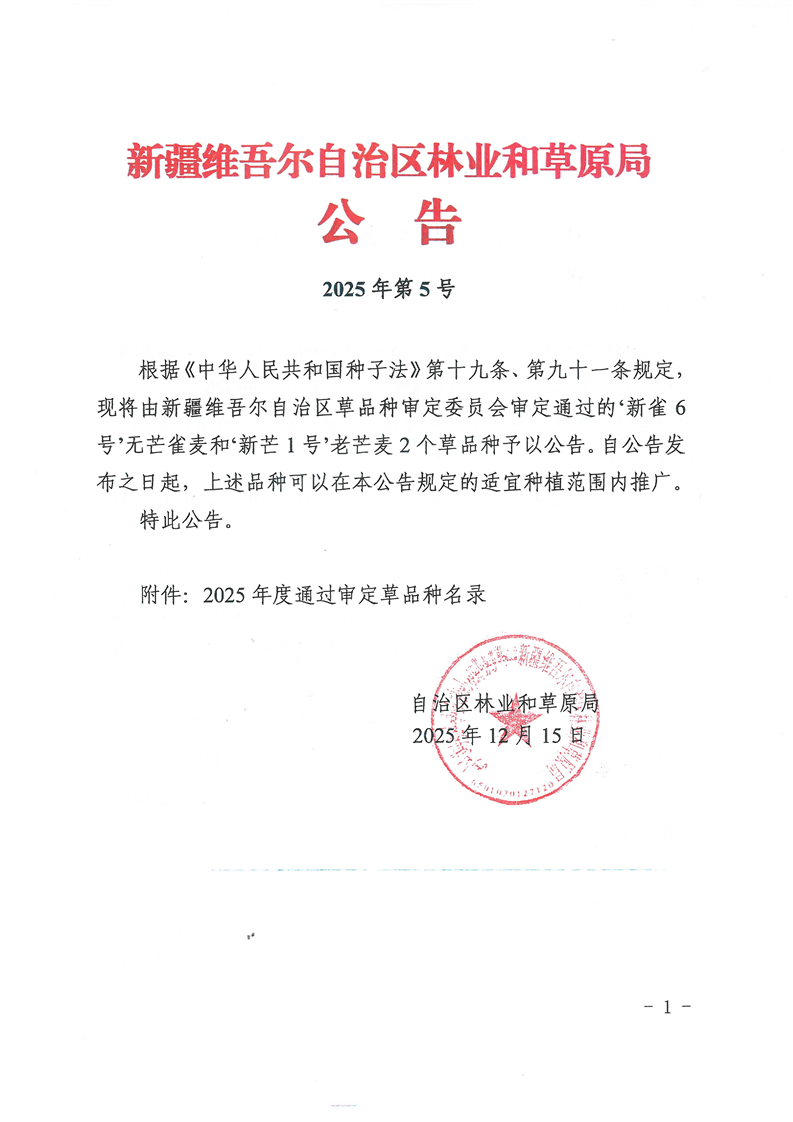 新疆维吾尔自治区林业和草原局公告(2025年第5号)(2025年度草品种审定)