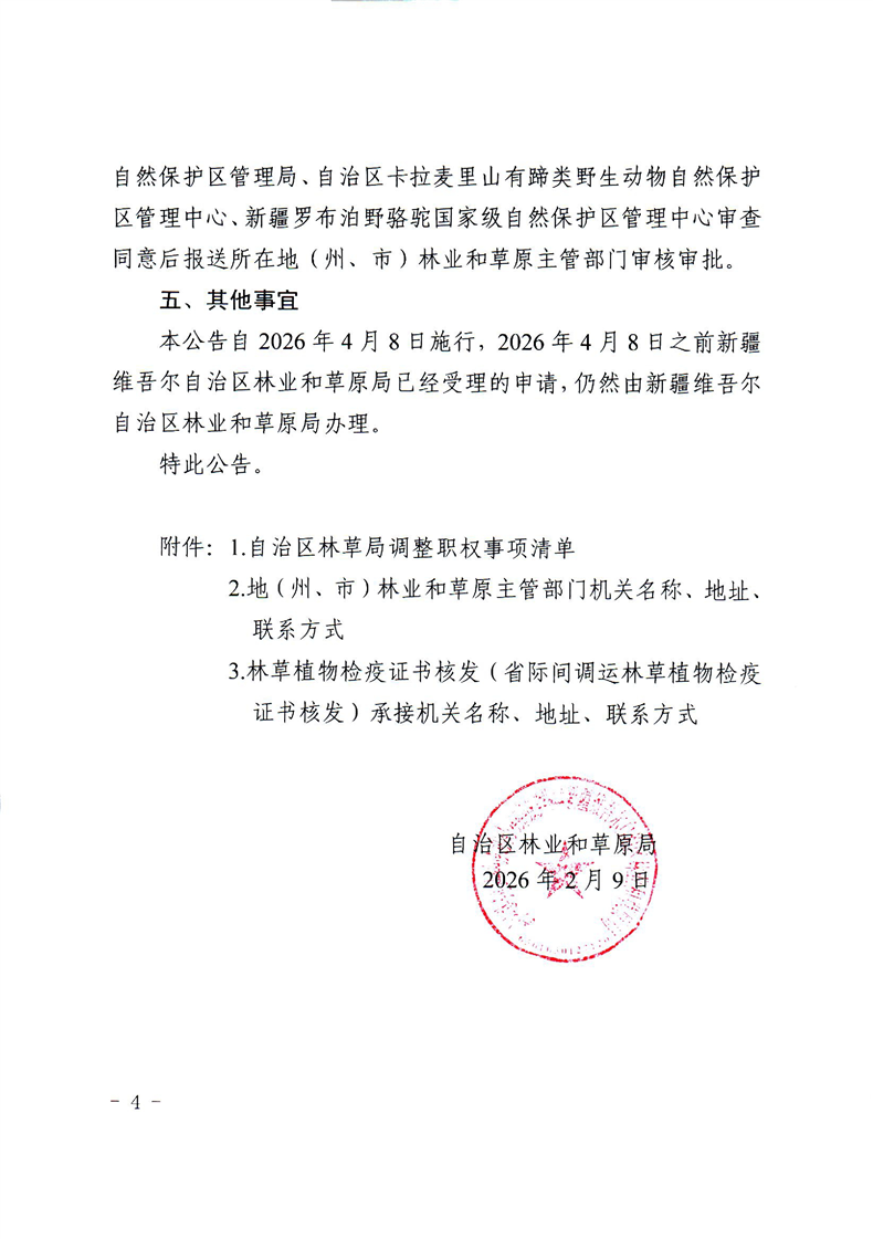 新疆维吾尔自治区林业和草原局公告2026年第1号
