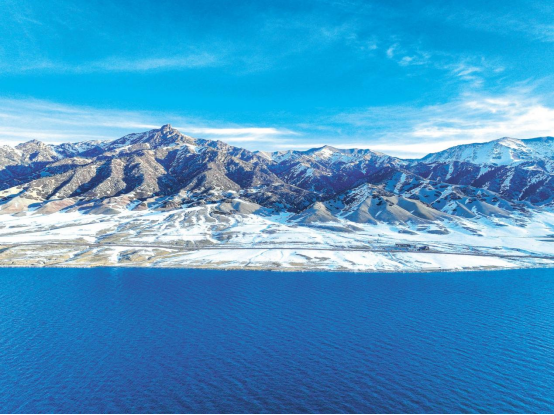 冬日,新疆维吾尔自治区博乐市赛里木湖银装素裹、雪山环抱,湖水清澄碧透,山湖相拥,绘就边疆地区独特景致,冬景宛如一幅纯净的冰雪生态壮丽画卷。